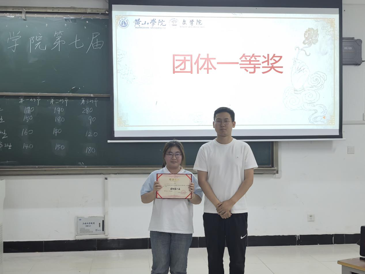 经过预选赛的激烈角逐,本次共有四支代表队晋级决赛。决赛分“虚席以待,眼疾手快,风险投资”三个环节,竞赛题目经过重重审核、内容涵盖先秦至民国时期的国学经典、诗词名篇、风俗民情、历史文化等多元内容。选手们在赛场上激烈角逐,展现扎实的国学知识积累,为观众呈现出一场精彩纷呈的比赛,“眼疾手快”抢答环节更是将本场比赛推向高潮。最终,24中文1班荣获团体一等奖,24中文专升本2班荣获团体二等奖,23中文1班和23中文2班荣获团体三等奖。