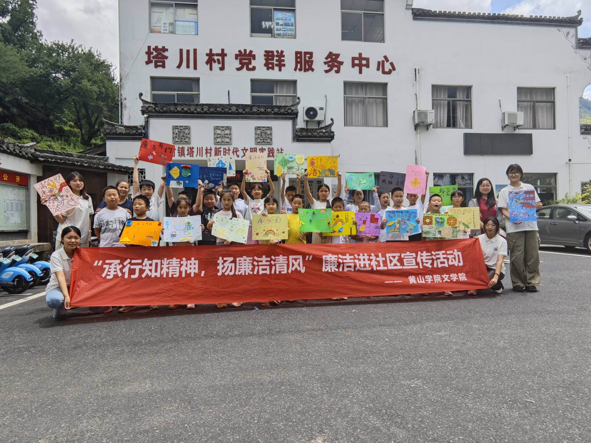 为践行陶行知先生“捧着一颗心来,不带半根草去”的精神,团队成员们深入塔川社区,开展了“承行知精神,扬廉洁清风”的廉洁宣传活动。队员们向村民和孩子们宣讲了廉洁精神的内涵和重要性,深入学习廉洁文化知识,倡导诚实守信、勤俭节约的乡村民风,并组织进行了廉洁海报绘制活动,推动廉洁理念深入人心,为塔川村带来了一阵清新的廉洁之风。