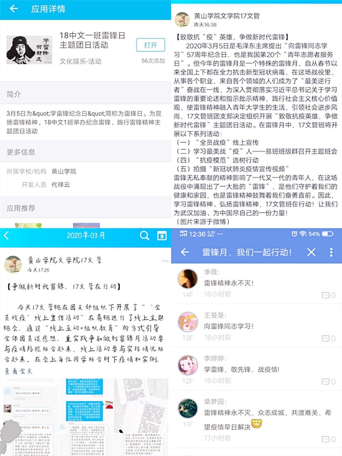 此次活动包括线上主题班会、线上防控知识问答、志愿服务、雷锋主题书画活动等形式,将学习雷锋精神与当下抗击疫情的形势相结合,引导广大同学学雷锋精神,做抗“疫”先锋,培养社会责任感。
