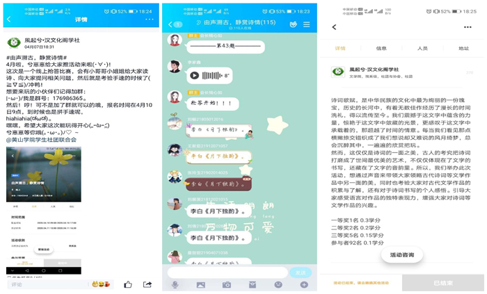 在同学们的踊跃抢答,积极参与下,“以声溯古,静赏诗情”活动圆满结束。此次活动通过声音为同学们建立了一个通往诗歌音律美的桥梁,引导同学们感受语言对作品的独特表现力,增强了大家对诗词等文学作品的兴趣。