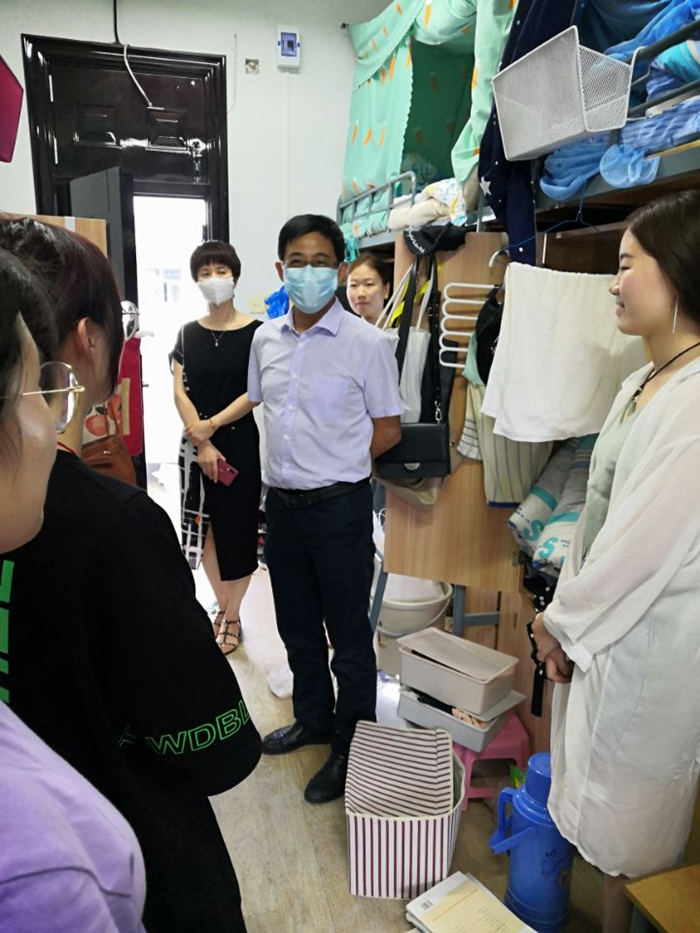 6月29日下午,该院领导班子分别在辅导员老师的陪同下来到毕业生宿舍,看望慰问返校毕业生,为刚刚经历了漫长假期,又将走出校门、踏上人生新征程的学子们送上温暖与祝福。