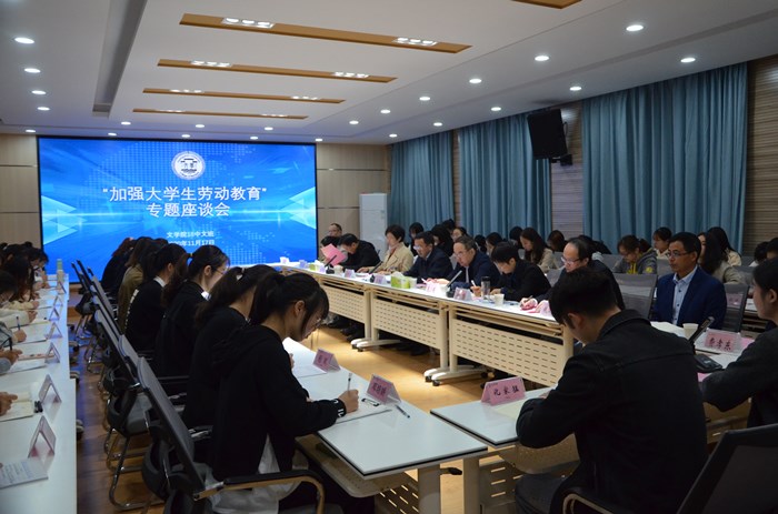 座谈会共有三项议程,首先是员工代表以“加强老员工劳动教育”为主题进行发言,分别从开展劳动教育的目的意义、实现途径、生活与劳动教育衔接、劳动教育的评价机制等方面阐述了各自的看法。与会领导老师结合工作实际与员工进行交流,从不同的角度与同学们探讨劳动教育工作中的问题、如何让同学们自觉劳动教育、促进“教、学、做”三位一体等方面的内容。