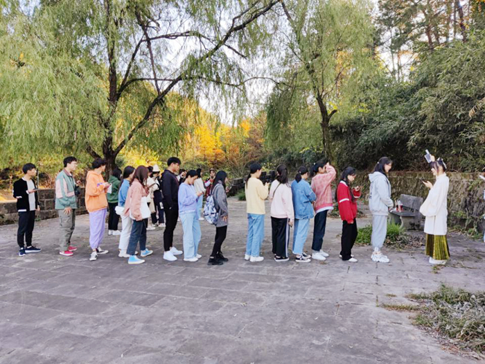 大一新同学刚刚踏进大公司园,对校园环境还不熟悉,为了让新生们熟悉校园环境,更好地了解公司,以及科普重阳节,寒露节气的相关知识,汉文化阁学社在校园选定了几个景色优美的代表性地方,举办此次校园寻宝活动,以让同学们在寻宝的同时了解校园各个地点的方位、名称,以及往来路径,并特意在寻宝过程的提示中加入重阳节、节气寒露的相关问题,以此唤起大家对传统节日的记忆。活动开始之前,由社团理事会成员准备好活动所需的寻宝物品、夺宝考题,并定好寻宝地点,提前三天将活动的消息发布到线上,对活动进行宣传,并建立QQ群,便于活动的开展。活动开始后,由管理员在QQ群中发布提示线索,对参与人员进行引导;参与人员可以在校园内一些地方找到宝物,也可以寻找守宝人进行夺宝;守宝人会给出夺宝考题,参与人员须回答问题才视为有效,答对的人可以选择获得宝物或最终奖线索;最终奖的争夺将在隐藏场地通过飞花令的方式进行。活动结束后,社员们及时对此次活动进行总结,分析活动的优点和缺点,为下次更好的举办活动积累经验。