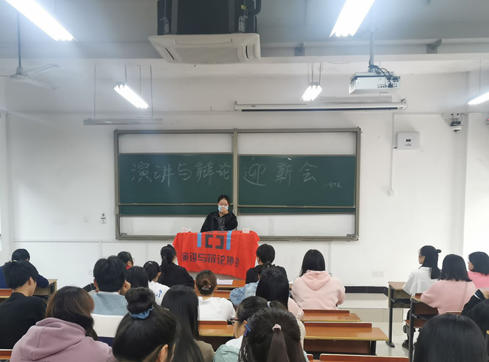 演讲与辩论协会新老成员们欢聚一堂。由会长宣布活动开始,各部门部长简要介绍各组织职能后,由各位新同学上台做自我介绍。之后邀请18级资深演讲辩论赛的学姐前来参与。她对各类演讲和辩论比赛方面的发表了个人见解,同时强调了比赛要求,并表示希望新生们能多关注演讲辩论赛事。在今后的培训中能提升实战能力。通过本次活动各位社员学到更多的演讲与辩论方法,能在未来的赛事中加以运用