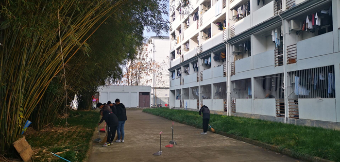 20汉教班开展清扫寝室楼道、公司办公室活动,维持良好的公共环境卫生。
