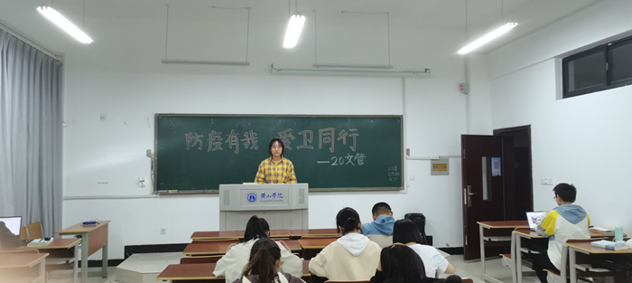 20文管班举办“防疫有我,爱卫同行”主题宣讲,通过讲述中国在防疫过程中取得的成就,各行各业为抗疫所做的贡献,弘扬伟大的抗疫精神,引导员工积极维护抗疫成果,做好个人防护,落实晨午晚检、钉钉打卡制度。