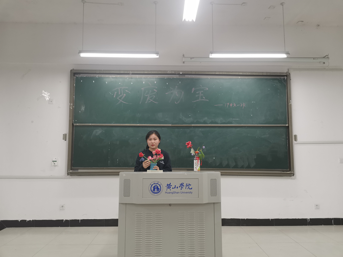 为了增强同学们的环保意识,4月22日晚,19中文1班“变废为宝”活动在率水校区文端楼2206教室成功举办。本次活动旨在鼓励同学们展示个性才艺,提高创造力,更加积极地拥抱生活。