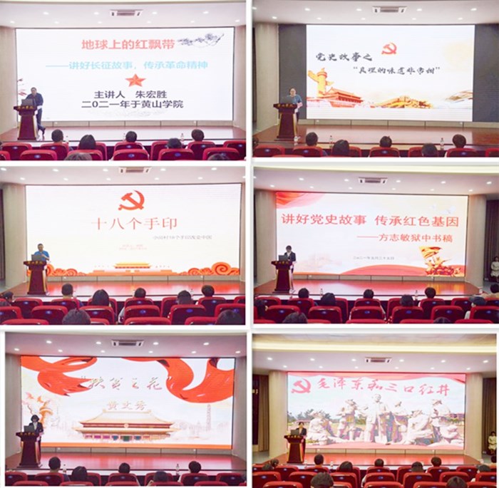 活动现场,六位师生党员用生动的语言讲述了《真理的味道非常甜》《方志敏狱中书稿》《毛泽东与三口红井》《地球上的红飘带》《小岗村的十八个血手印》《扶贫之花黄文秀》等中国共产党百年历史进程中的六个鲜活故事,让现场观众接受了一次生动的党史学习教育。