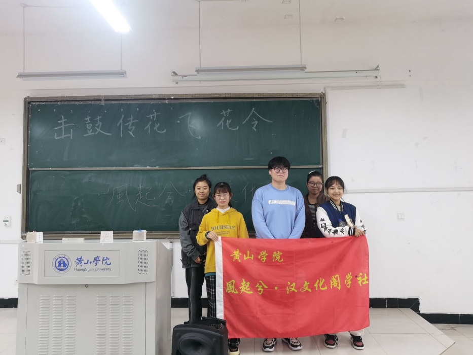 飞花令,原本是古人行酒令时的一个文字游戏,源自古人的诗词之趣,得名于唐代诗人韩翃《寒食》中的名句“春城无处不飞花”。击鼓传花也是传统民间游戏,今天将二者融合创新,既可以重温古诗词,又能享受到游戏的乐趣。为增强社员之间感情,增进古诗的交流,在这冬日里和朋友一起体会这种温情,特此举办一次击鼓传花·飞花令的活动。汉文化阁“击鼓传花·飞花令”活动于2021年11月20日16点于线下文端楼2206教室圆满结束。此次的“击鼓传花·飞花令”活动由風起兮·汉文化阁学社举办,共一百五十人参与。