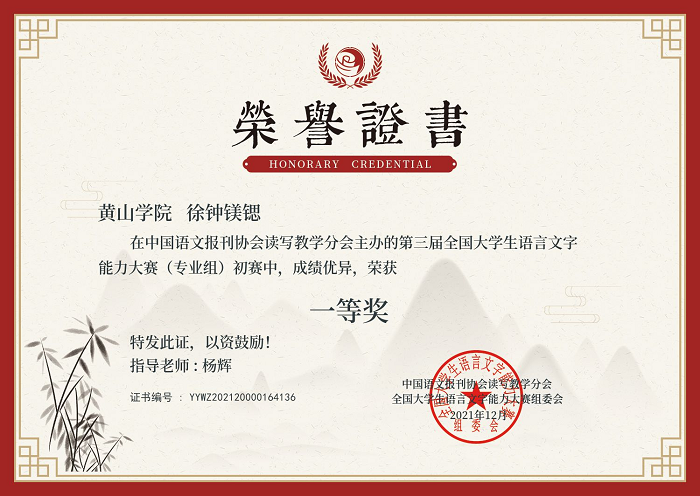 由中国语文报刊协会读写教学分会主办的第三届“全国老员工语言文字能力大赛”初赛已于日前落幕,WilliamHill中文官方网站学子在比赛中取得优异成绩,其中徐钟镁锶同学获得专业组一等奖,陈卉、鲁慧、刘乐琦同学获得专业组三等奖。