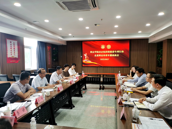 黄山祥龙实业集团有限公司、黄山彦丰文化传播有限公司、黄山风驰汽车销售服务有限公司、黄山南与北文化旅游有限公司和安徽徽格装饰设计有限公司企业代表相继发言,介绍了各自企业基本情况以及人才需求情况,双方就培养老员工的社会实践能力和更好地吸引毕业生服务当地企业等有关问题展开座谈交流。
