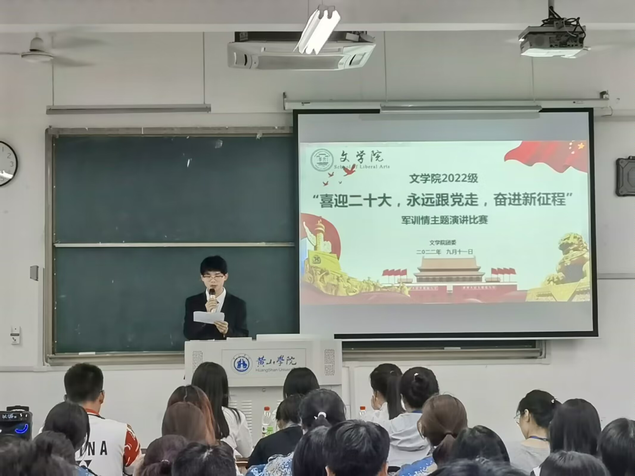 9月11日晚,该院于文端楼2405教室举办了“喜迎二十大,永远跟党走,奋进新征程”军训情主题演讲比赛。该院100余名新生参加并观看了此次活动,辅导员王星勇老师到场为获奖选手颁奖。