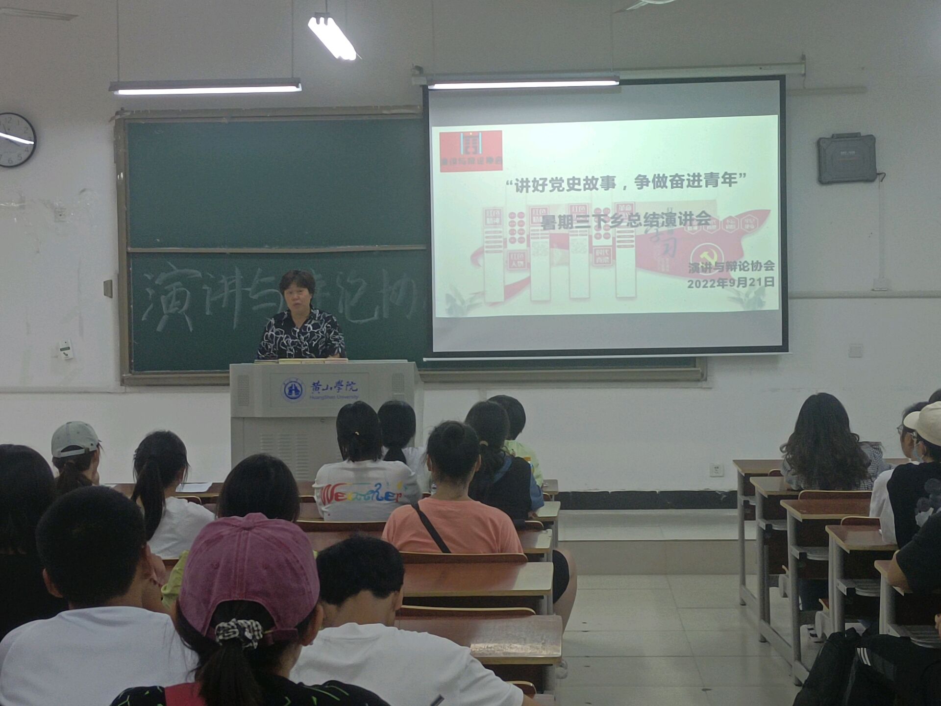 2022年9月21号,演讲与辩论协会“暑期三下乡总结演讲会”在文端楼2205成功举办,演辩协会充足准备前期筹备和宣传工作,并提前到达活动场地,放映演讲需要的PPT,清理活动场地,从而确保活动的顺利进行。