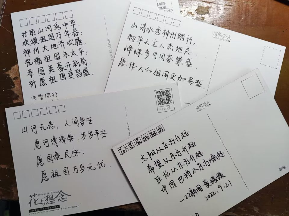 本次活动以线下活动形式展开,活动难度小,步骤清晰明了,易于操作。参与人员在活动期间到达现场,在明信片上写下自己对祖国的祝福语,在工作人员整理后,面向同学进行展览。工作人员根据审核完成发放完学分奖励后,此次活动圆满结束。