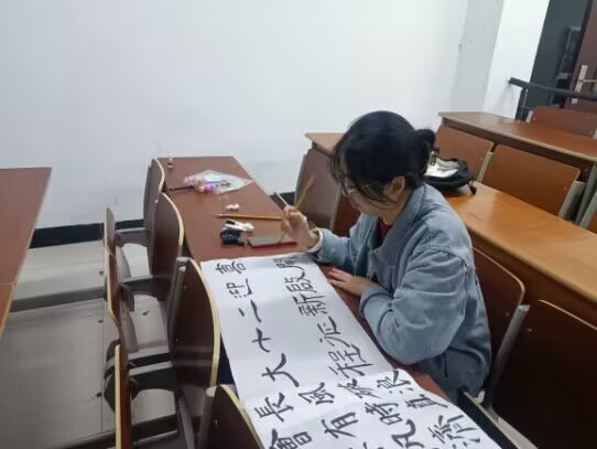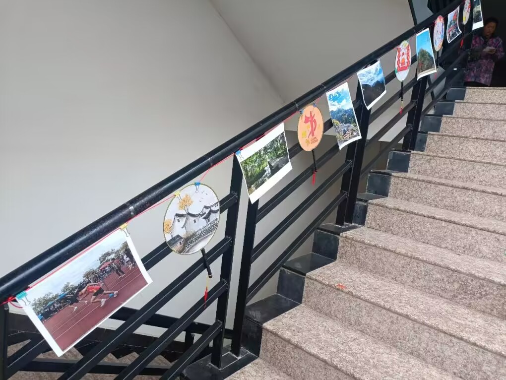 活动结束后,同学们还将作品在教学楼栏杆旁展览,吸引不少同学驻足观看。