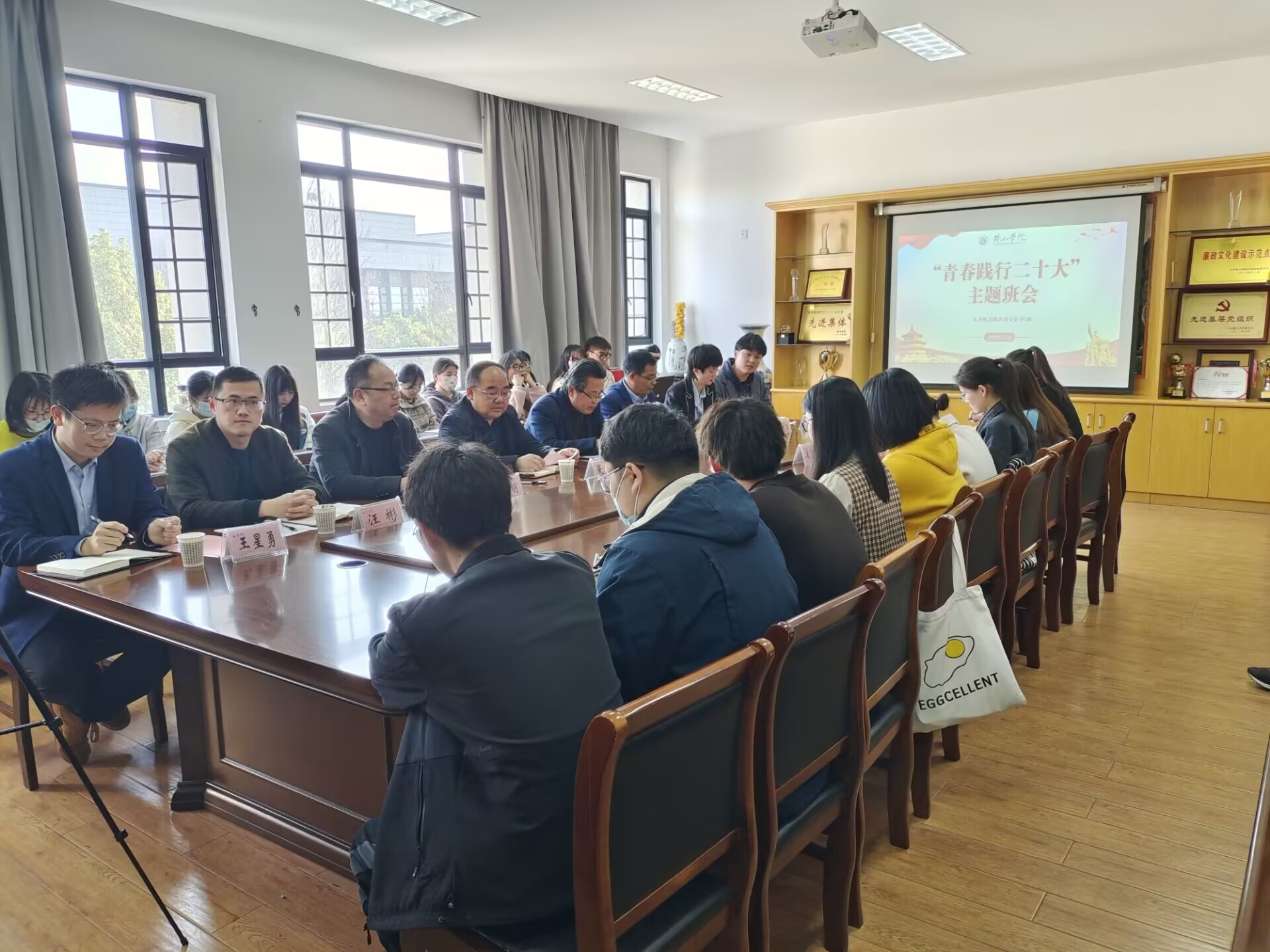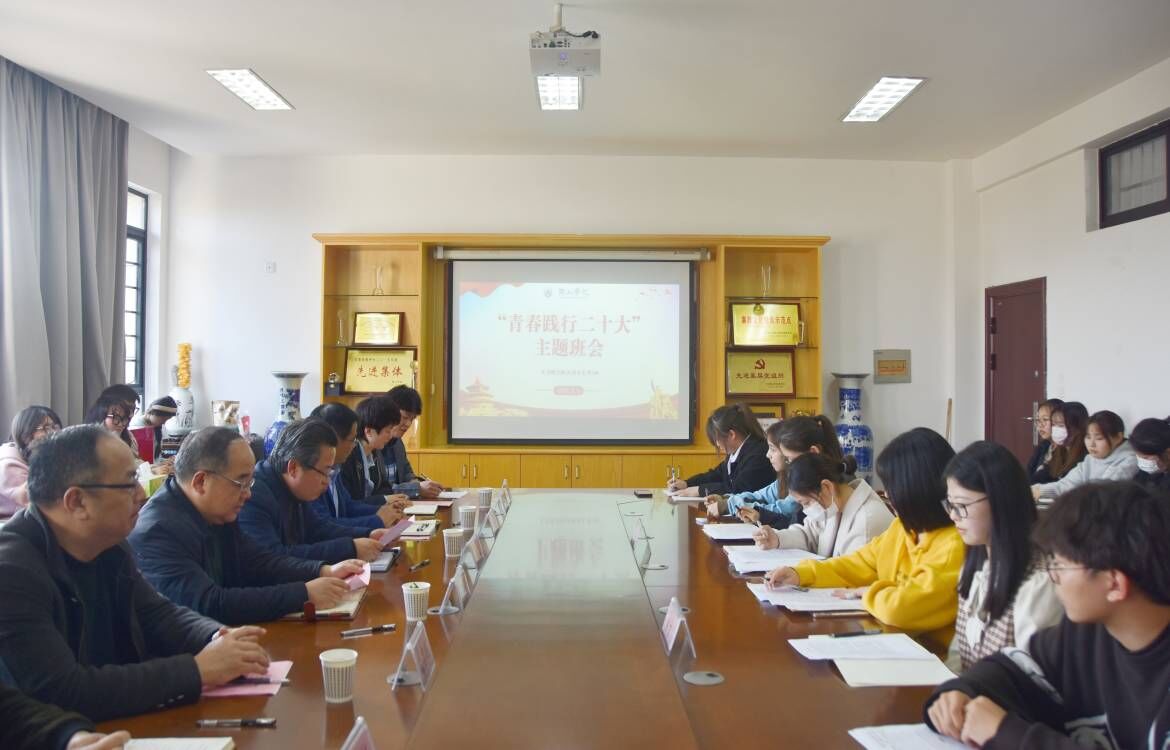 3月9日下午,2020级汉语言文学1班在该院会议室举办“青春践行二十大”主题班会。公司党委委员、副经理张小明,马克思主义公司党总支书记刘春安、员工处副处长汪彬,公司领导班子成员、团委负责人、专职辅导员等参加了主题班会。主题班会由该班班长王远康主持。