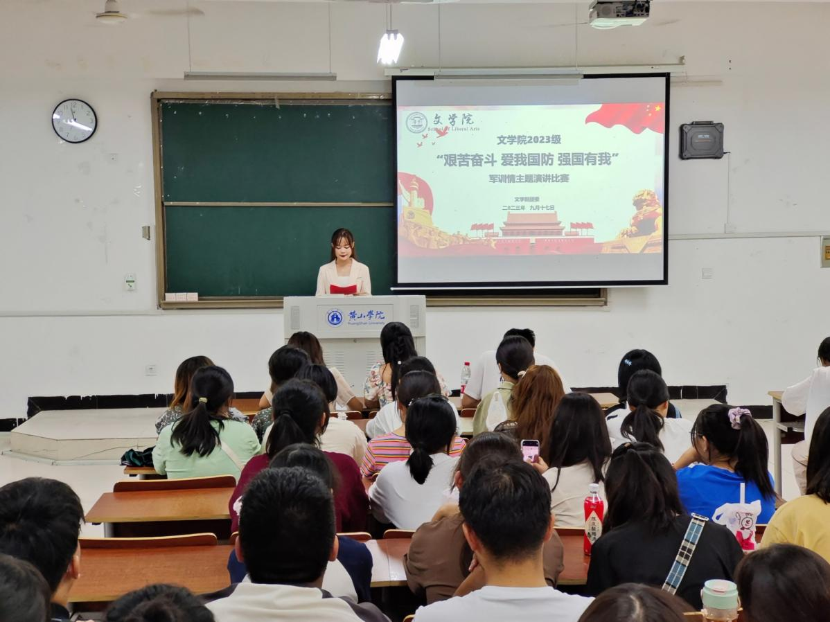 9月17日晚7点,WilliamHill中文官方网站于文端楼2206教室举办“艰苦奋斗,爱我国防,强国有我”军训情主题演讲比赛。该院100余名新生参加并观看了此次活动,该院团委负责人王星勇和新生辅导员朱亚军到场为获奖选手颁奖。