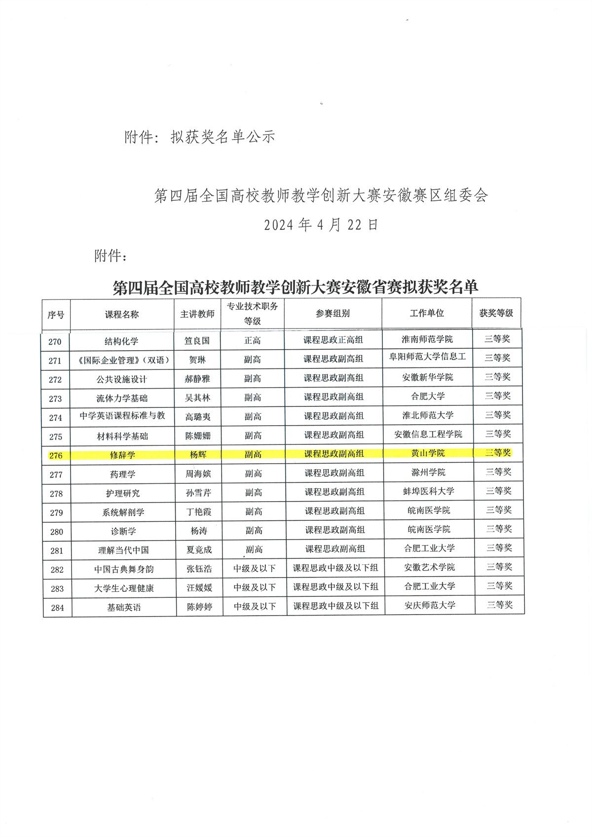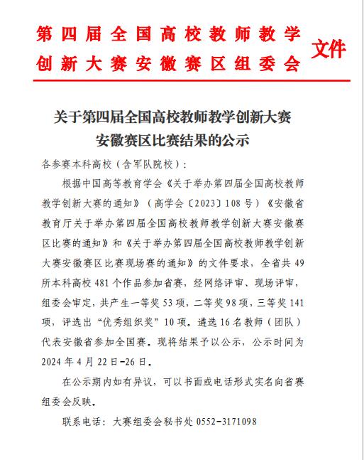 据安徽省高等公司教师教学发展联盟《关于第四届全国高校教师教学创新大赛安徽赛区比赛结果的公示》文件,WilliamHill中文官方网站杨辉老师《修辞学》教学团队荣获课程思政副高组三等奖。本次大赛由安徽省教育厅主办,安徽财经大学承办,以“推动教学创新、培养一流人才”为主题,共设置新工科、新医科、新农科、新文科、基础课程6个组别。大赛分为网络评审和现场评审两个环节,全省49所本科高校481个作品参加省赛。