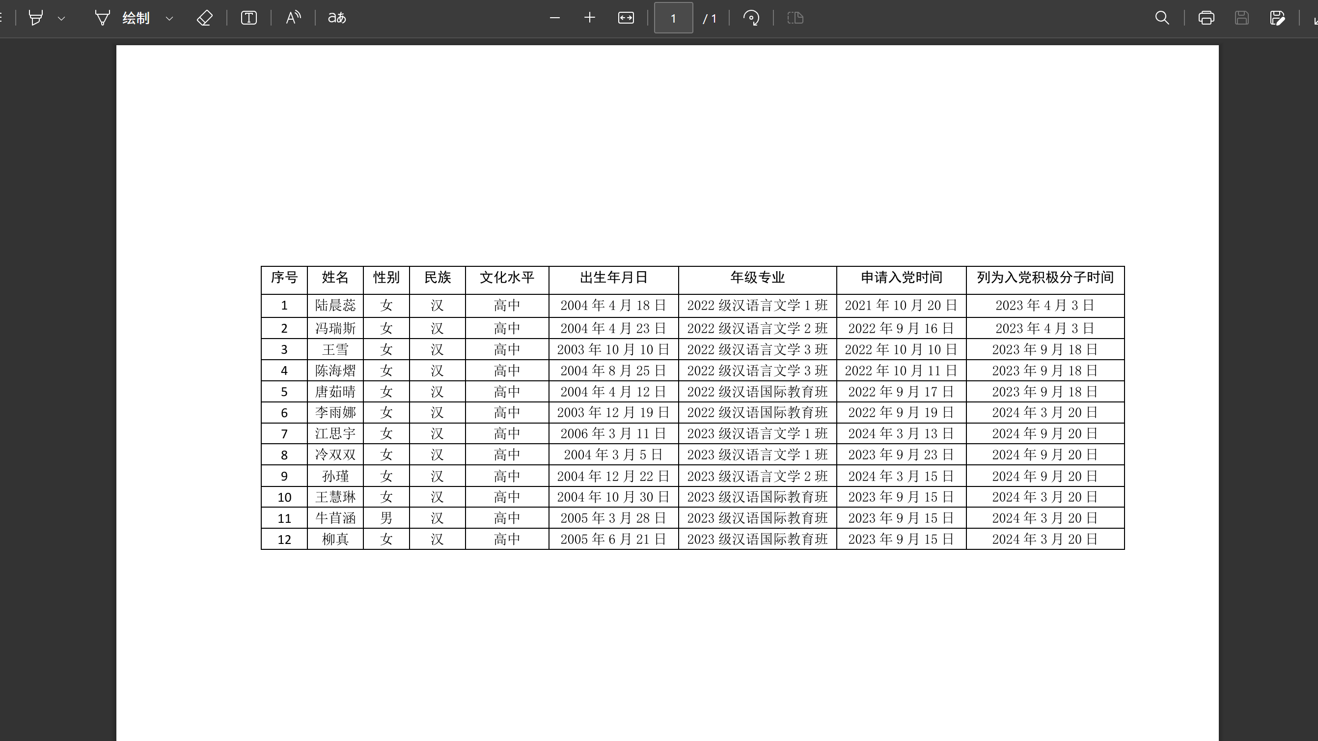 经支部委员会讨论,拟确定以下12位同志为发展对象。根据发展党员工作有关要求,现将其有关情况公示如下: