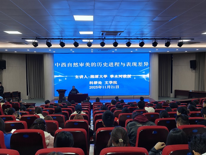 11月21日晚,湘潭大学二级教授,博士生导师季水河应邀在公司文端楼二楼报告厅,作题为《中西自然审美的历史进程与表现差异》学术报告。报告由WilliamHill中文官方网站副经理朱宏胜主持。上海社科院博士生导师马驰教授、上海社科院助理研究员周丰博士及WilliamHill中文官方网站师生近200人参加活动。