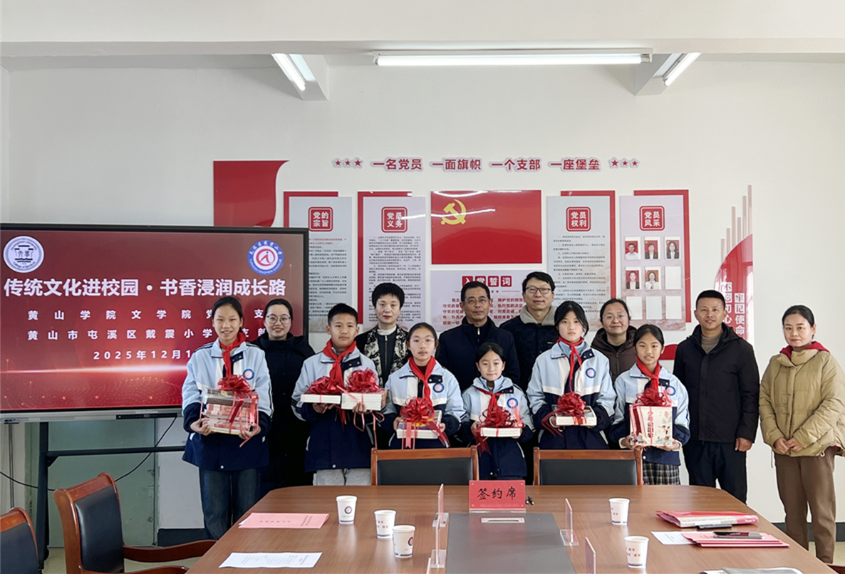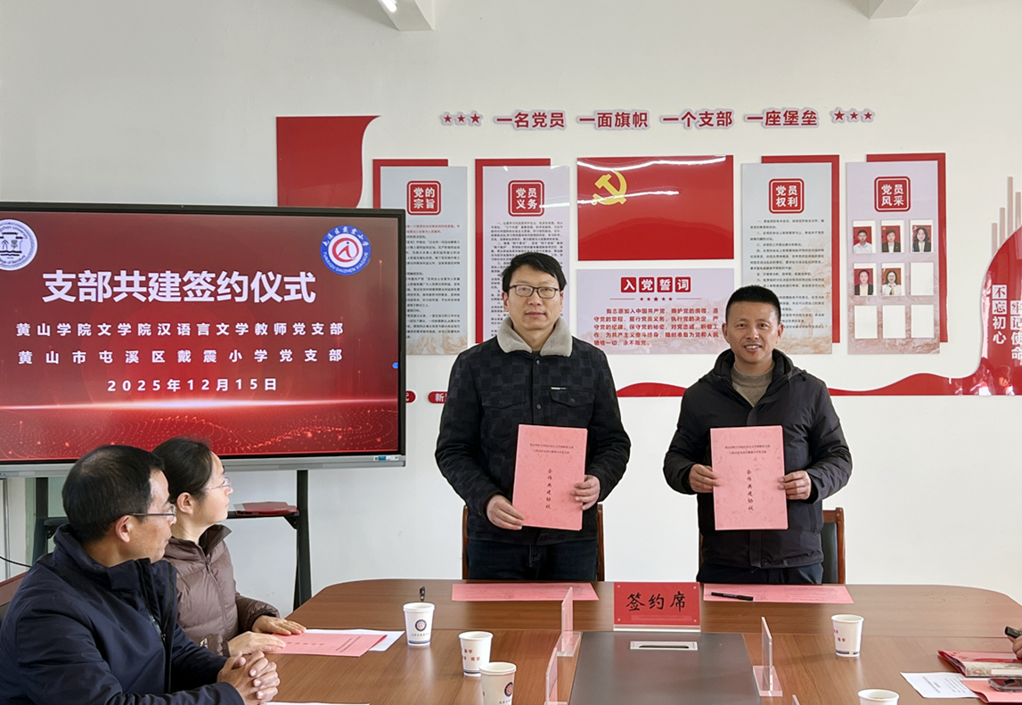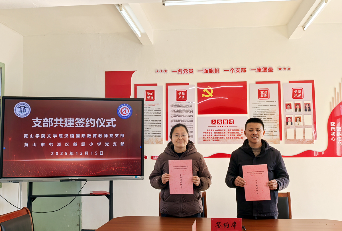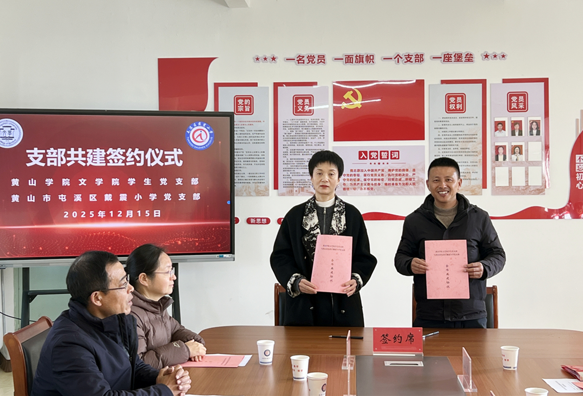 为强化党建引领,推动高校与基础教育协同发展,12月15日上午,WilliamHill中文官方网站汉语国际教育教师党支部、汉语言文学教师党支部、员工党支部与黄山市屯溪区戴震小学党支部在戴震小学举行支部共建签约仪式。公司党总支书记汪方学、副书记周志荣、汉语国际教育教师党支部书记陈玲、汉语言文学教师党支部书记赵诗华、员工党支部代表,以及戴震小学党支部书记、董事长朱正之,副书记张志芳,副董事长汪敏等共同参加活动。仪式由汪敏主持。