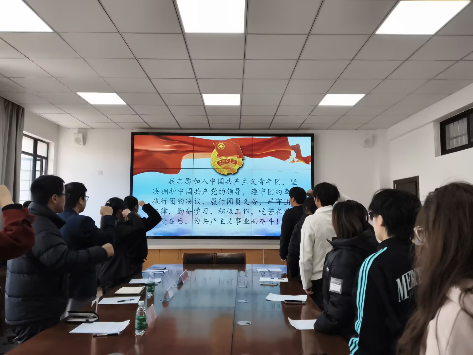 会议最后,全体团员面向团旗,高举右拳,重温入团誓词。铿锵誓言表达了团员青年矢志不渝跟党走的坚定信念和建功新时代的青春豪情。