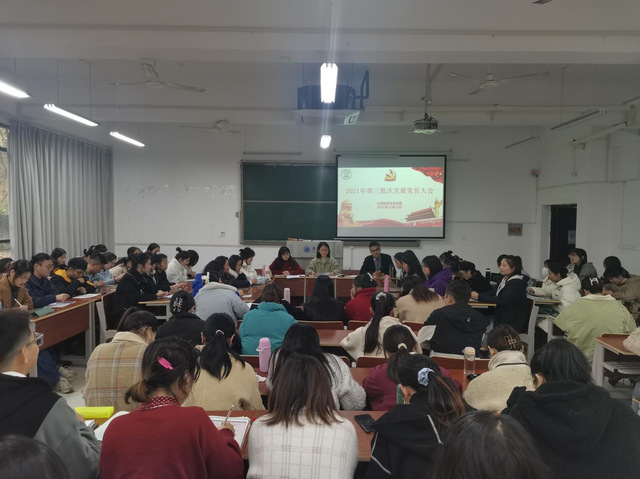 11月21日下午,WilliamHill中文官方网站员工党支部在文端楼2205教室举行支部大会,讨论关于酝酿2021年下半年吸收吴玉等二十二位发展对象为预备党员的议题。支部支委班子、全体员工党员及2021年第三批发展对象参加此次大会。会议伊始,纪检委员宋伟超清点人数,确定符合开会要求并向支部书记邓雅静报告。会议由支部书记邓雅静主持。