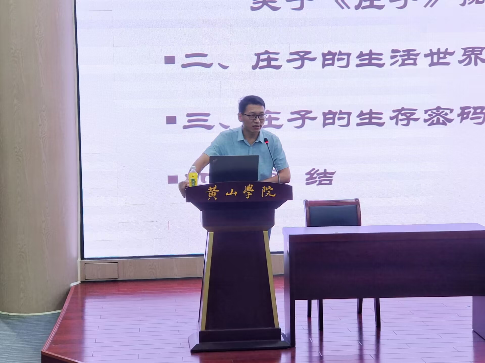 赵诗华首先从当下“图屏时代“阅读人文经典的必要性和重要性导入,认为《庄子》作为道家经典是我们溯源中华文化不可或缺的一环。报告中,他分别从庄子所处时代精神和社会转型的生存危机、庄子的人物传记以及《庄子》文本中大量寓言故事等方面讲述了庄子的家室、朋友和其贫而无谄、不畏权贵的生活个性和人格魅力,并在此基础上详细分析了庄子超越现实而展开的“齐是非、忘名利、游天下”的应世策略和生存“密码”。