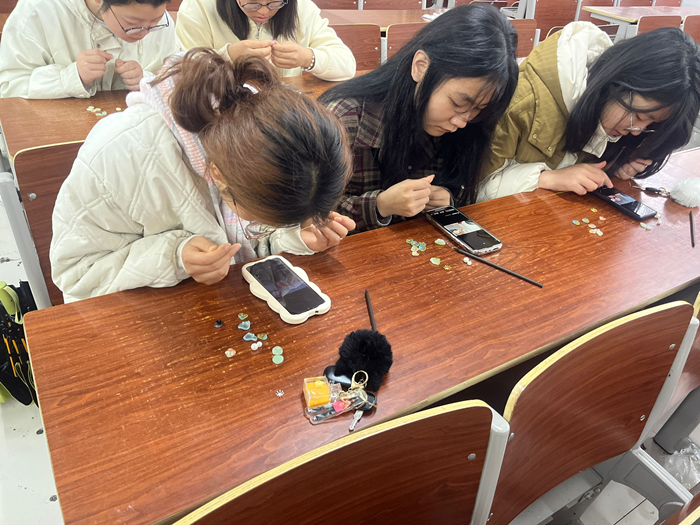 活动中,同学们参考相关教学视频进行制作发簪。大家都积极发散思维制作出各种款式的发簪,活动达到了一定的预期效果。