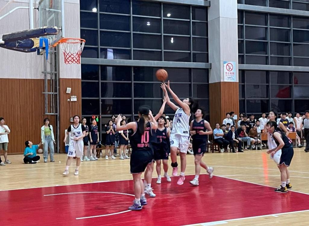 我院女篮近几年均有不俗表现,有着顽强的意志和拼搏的精神,从小组赛到半决赛,一路过关斩将,最终再次站上了决赛的舞台。面对决赛的对手,传统强队旅游公司女篮,她们不气馁,不退缩,在赛场上进攻、防守,传球、运球,体现了这支队伍的实力和必胜的信念。尽管最终遗憾告负,未能成功卫冕,但她们以上下一心,通力合作的精神赢得了对手和场下观众们的肯定,我院领导也到现场观看了比赛。