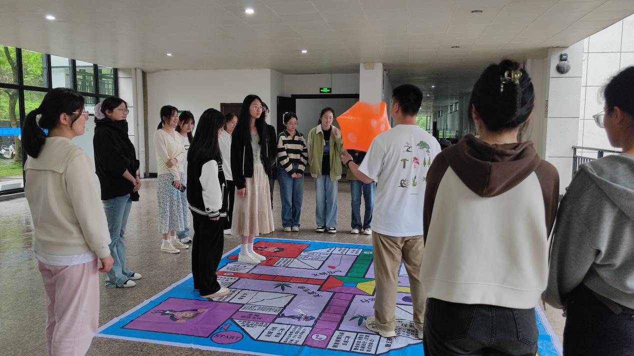 五彩斑斓的交通安全知识飞行棋盘,同学们扮作“棋子”,回答相关交通安全知识,并根据标识内容投掷骰子前进,整个活动现场气氛热烈,欢声笑语不断。活动结束后,同学们积极在易班APP上发布易喵喵“交通安全进班级,飞行棋里学知识”话题,并分享自己的活动心得。