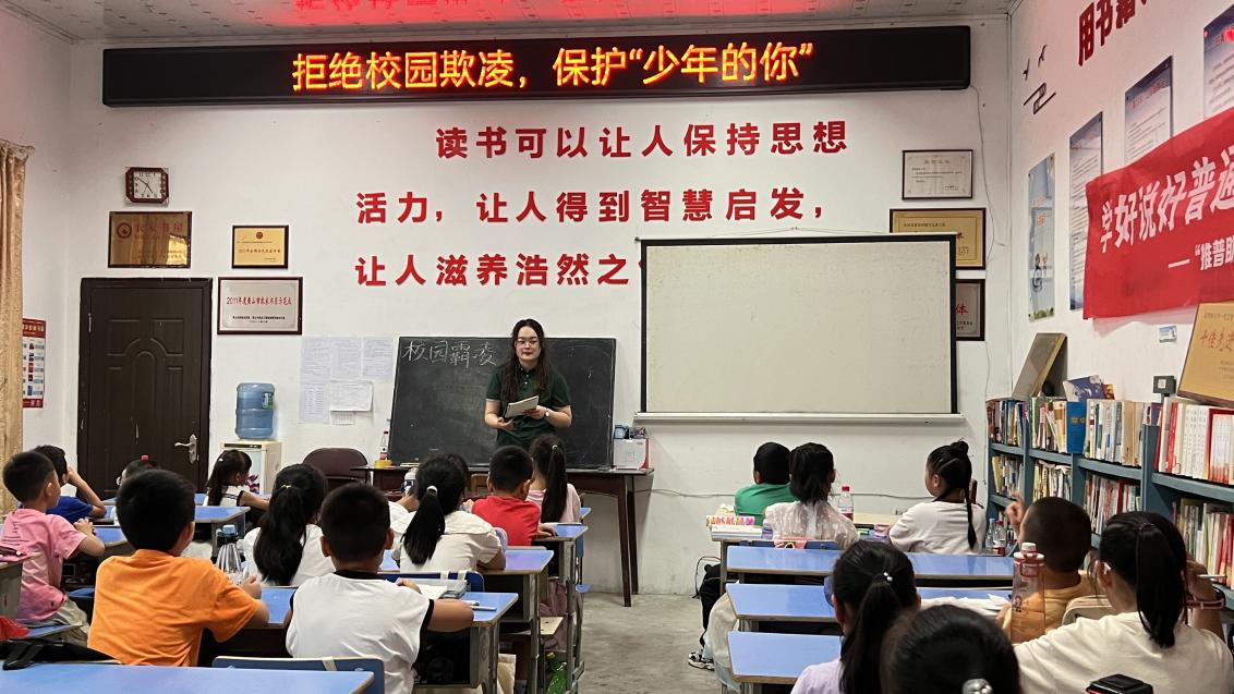 在安全教育宣传课堂上,队员们结合身边的鲜活案例,用通俗易懂的语言,向孩子们宣传普及防拐骗、校园反欺凌、防溺水、防电信网络诈骗、居家安全以及交通安全等知识,并围绕青少年心理健康教育开展了关爱留守儿童心理健康团体辅导活动,引导孩子们如何疏导不良情绪,如何走出社交困境,以向上向善的乐观态度面对学习生活的困境。