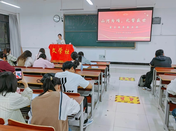 为庆祝第75个国庆节,增强同学们的民族认同感和自信心,帮助同学们用多元化的方式欢度国庆,黄山文学社于10月10日在文端楼2509举办“山河为颂,礼赞盛世”国庆故事会活动。