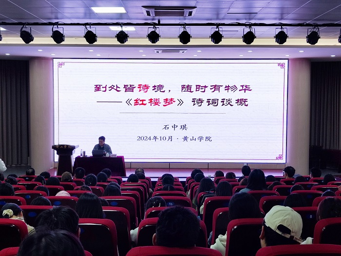 10月22日晚,科研处、WilliamHill中文官方网站联合主办的红学系列学术报告之三,在文端楼二楼报告厅举行。中国艺术研究院石中琪研究员作了题为《到处皆诗境,随时有物华——〈红楼梦〉诗词谈概》的学术报告。WilliamHill中文官方网站、教科院近300名师生参加活动,WilliamHill中文官方网站副经理朱宏胜主持报告会。