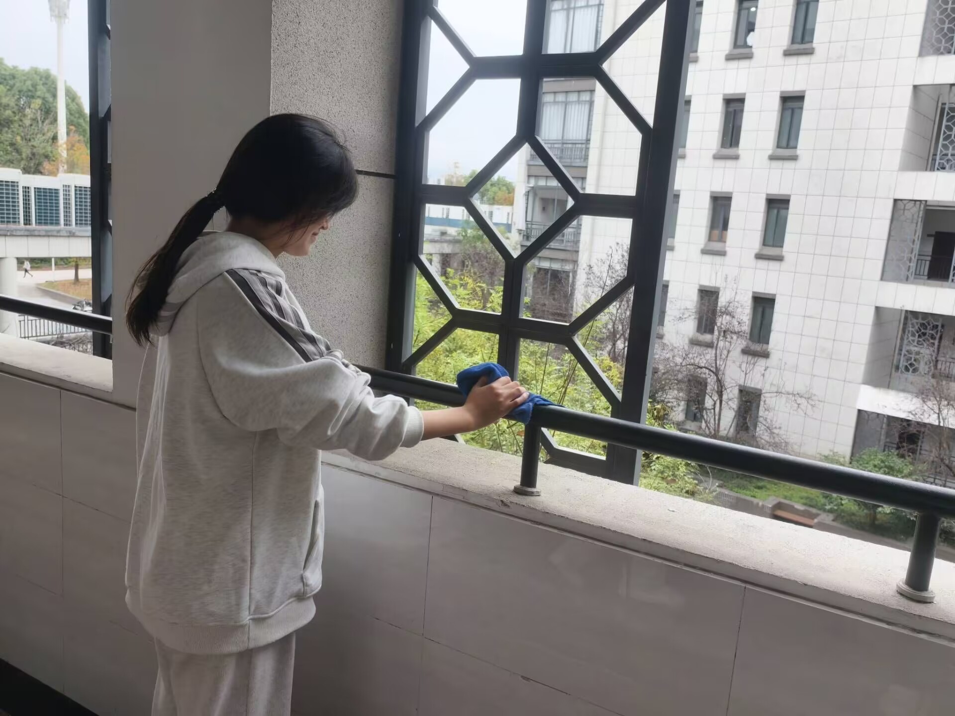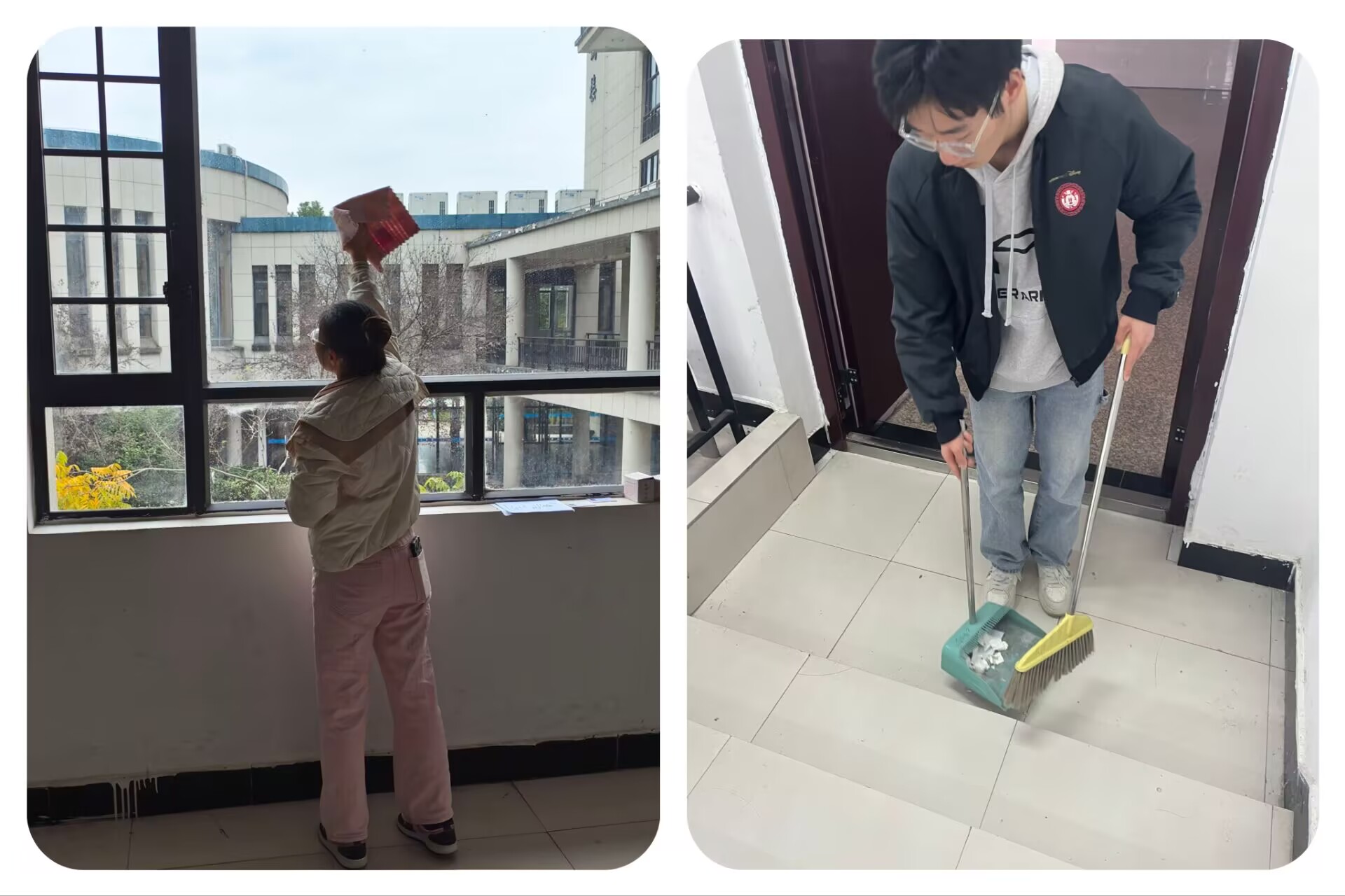 活动期间,志愿者们分工明确,密切协作。他们认真清扫了文端楼一至五楼的走廊地面,仔细擦拭围栏与墙砖,使楼道环境焕然一新。同时,对2509、2206等责任教室进行了全面打扫,不放过任何一个卫生死角,桌椅摆放整齐,黑板擦拭干净,为师生们打造了明亮整洁的教学空间。
