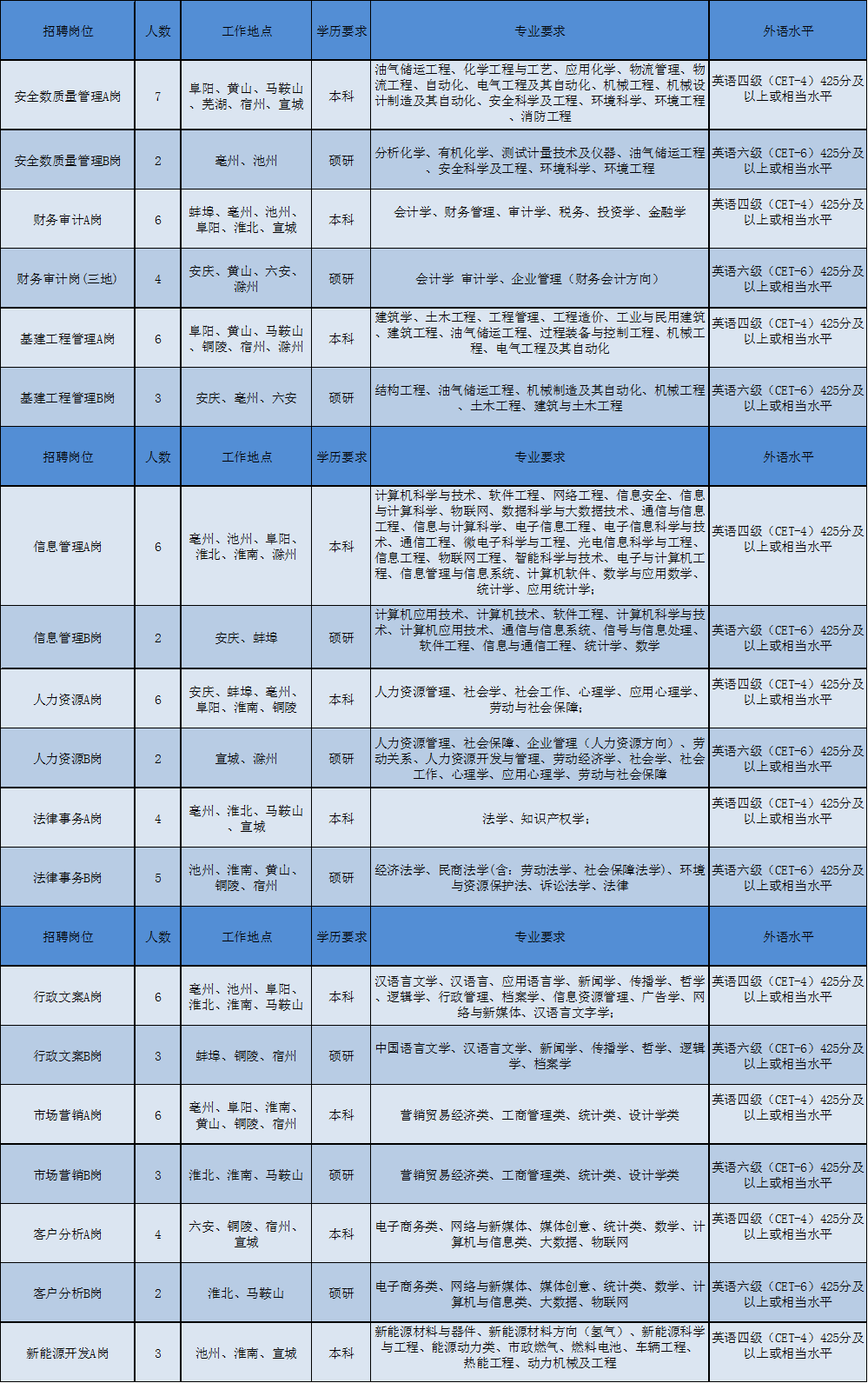 应聘毕业生应登录中国石化人才招聘网http://job.sinopec.com,仔细阅读有关公告。报名时,请选择“校园招聘”—“招聘信息”—“成品油销售企业”—“安徽石油分公司2021年度校园招聘”,报名时间截止到2020年10月16日。